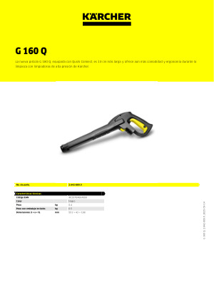 Pistola de recambio para limpiadoras de alta presión Consumer de Kärcher de las clases K2-K7. Para limpiadoras de alta presión en las cuales la manguera de alta presión se fija a la pistola.